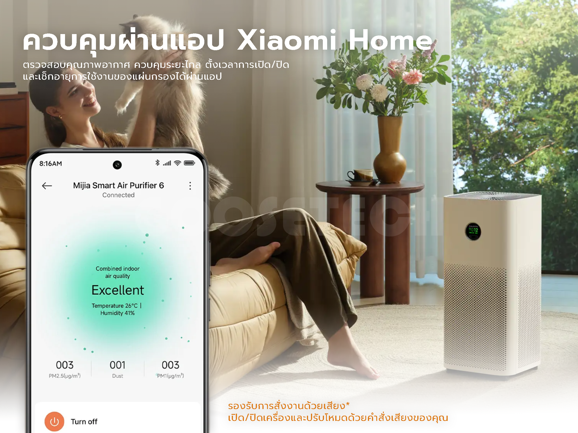 ทุกวันนี้ปัญหาฝุ่นและมลภาวะในอากาศกลายเป็นเรื่องที่หลีกเลี่ยงได้ยาก โดยเฉพาะคนที่อาศัยอยู่ในเมือง หรือมีเด็กเล็กและผู้สูงอายุในบ้าน การมีเครื่องฟอกอากาศดี ๆ สักเครื่องจึงเป็นสิ่งจำเป็นที่ช่วยให้ทุกคนหายใจได้อย่างมั่นใจมากขึ้น Mijia Smart Air Purifier 6 เครื่องฟอกอากาศอัจฉริยะรุ่นใหม่จาก Xiaomi ถูกออกแบบมาเพื่อดูแลคุณภาพอากาศภายในบ้านอย่างครบครัน ทั้งพลังการกรองที่มีประสิทธิภาพ เสียงทำงานที่เงียบ และดีไซน์เรียบหรูที่เข้ากับทุกห้องในบ้าน