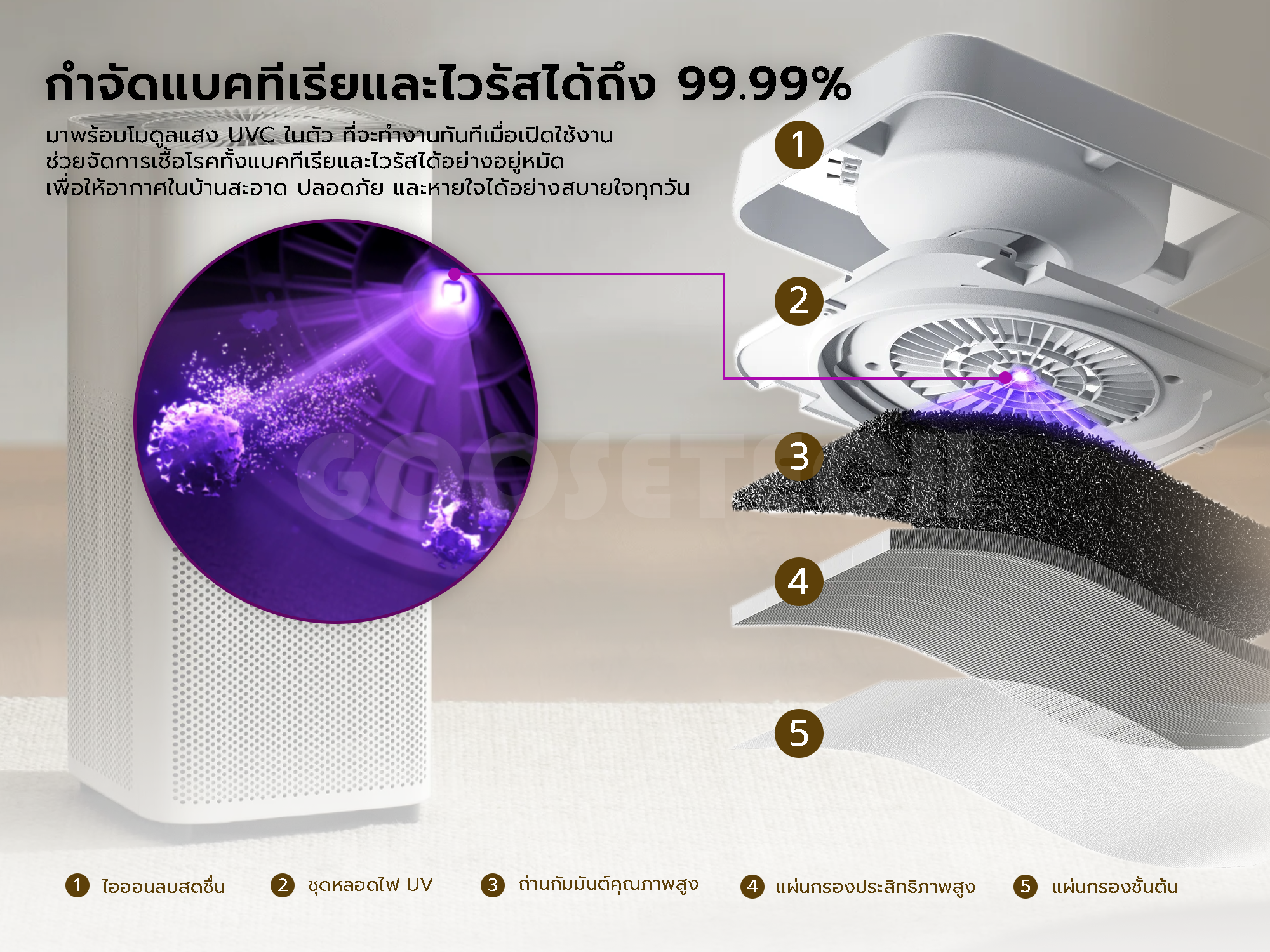 กำจัดแบคทีเรียและไวรัสได้ถึง 99.99%